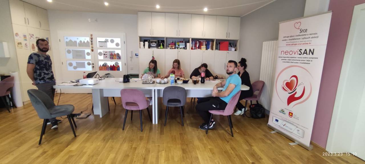 U razdoblju od 11. travnja do 31. svibnja 2023. održana je edukacija za pet zaposlenika Udruge Srce pod nazivom „Osposobljavanje za poslove pomoćnika/ice osobama s intelektualnim teškoćama u organiziranom stanovanju“