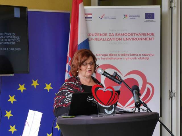 O značaju, svrsi i ciljevima projekta govorila je Marija Dugac, voditeljica projekta naglasivši da je opći cilj projekta promicanje socijalne uključenosti osoba s invaliditetom kroz poboljšani pristup socijalnim uslugama i kroz poboljšanje socijalne infrastrukture.